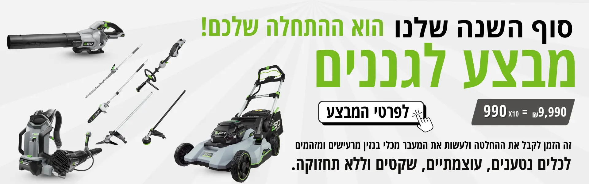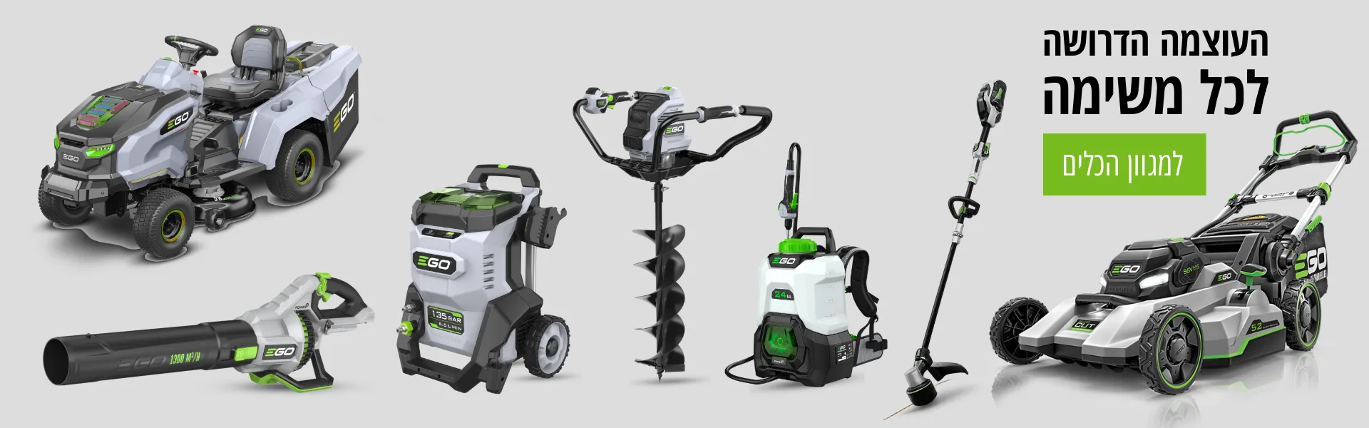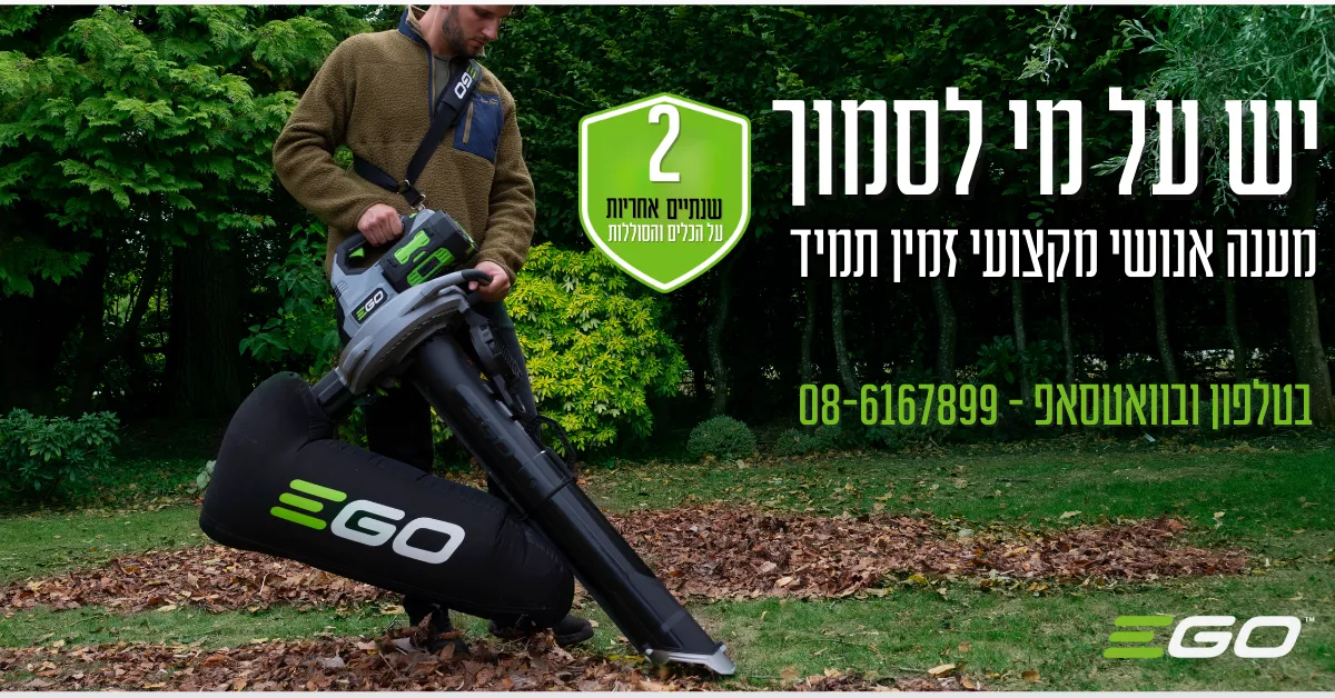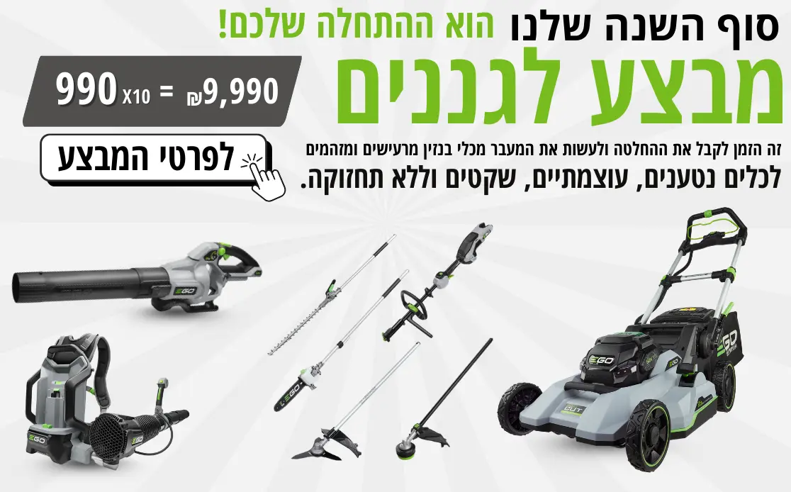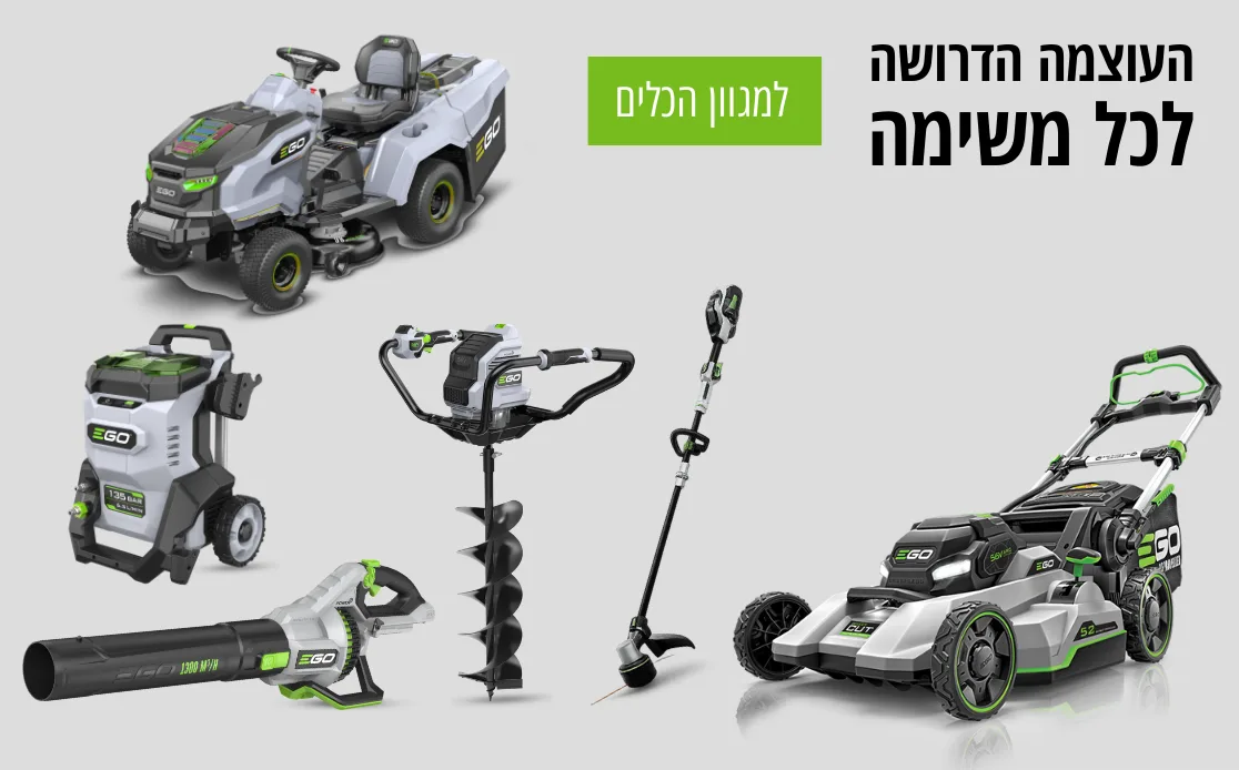 מגוון כלי גינון חשמליים נטענים מבית Ego Power - כלי גינון נטענים איכותיים וחדשניים, לאנשי מקצוע שלא מתפשרים על איכות.