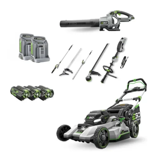 מבצע לגננים (1) 2026 - קומבי קרבון פייבר+ סט מכסחת נטענת 56V נסיעה עצמית 52 ס"מ+ מפוח + סוללה 6.0Ah