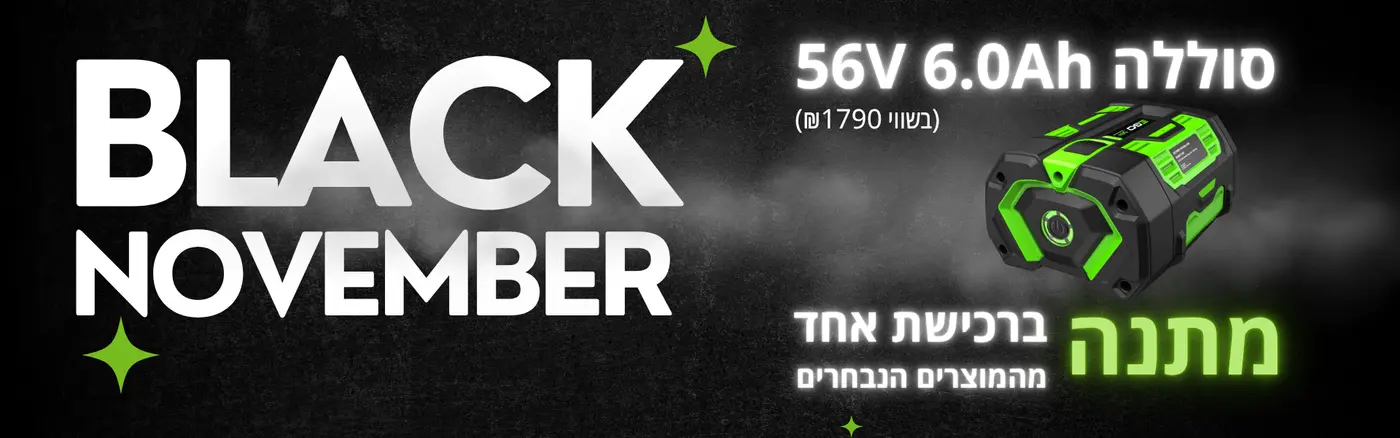סט קומבי ראש מנוע 56V קרבון פייבר + ראש חרמש + ראש מגזמת גובה + ראש מסור גבהים + ראש נינג'ה + סוללה 5.0Ah +מטען מהיר EGO